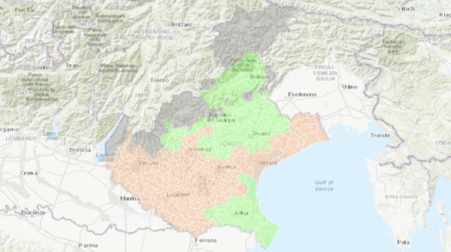 Inoltre, Venezia non è l’unico comune a soffrirne, visto che nel sito dell’Arpav possiamo notare che più di metà Veneto “vestito” d’arancio.