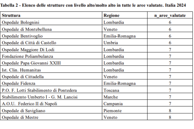 In particolare, sia l’ospedale mestrino sia quello piemontese sono riusciti a ottenere un punto in tutte le 8 categorie, raggiungendo così la vetta della classifica.