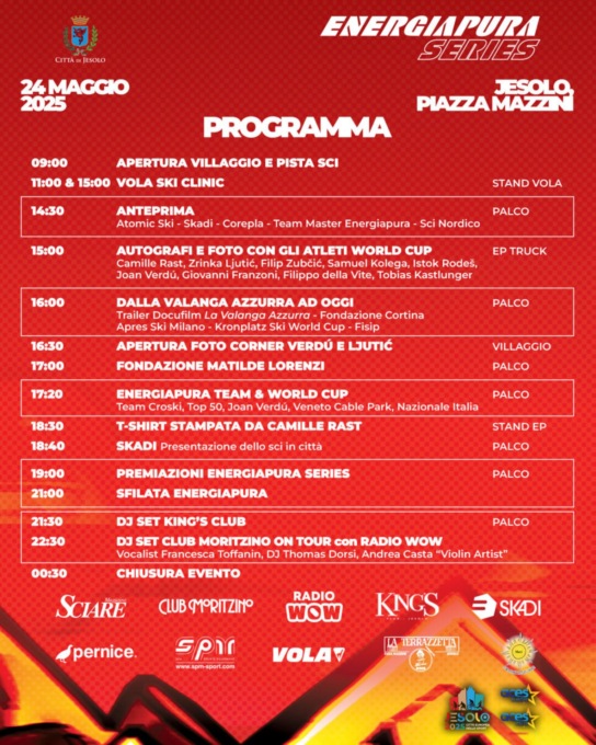 Giunto alla sua 19^ edizione, Energiapura Series rappresenta l’incontro tra la tradizione dello sci e una visione contemporanea dello sport e dell’ambiente. Non è un caso che l’evento prenda vita a Jesolo, località da sempre attenta alla sostenibilità e al benessere del territorio (Città Europea dello Sport 2025 e Comune Plastic Free) capace di reinventarsi come palcoscenico perfetto anche fuori stagione. Energiapura, azienda in prima linea nella produzione di abbigliamento tecnico a basso impatto ambientale, porta in piazza un messaggio chiaro: innovazione, rispetto per l’ambiente e valorizzazione del talento giovanile possono convivere in un progetto che guarda al futuro, senza dimenticare le radici.