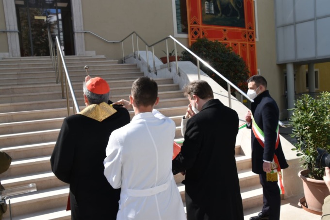 Dopo i saluti iniziali, il Patriarca Francesco Moraglia ha benedetto la struttura. Poi c’è stato il taglio del nastro da parte delle autorità, che successivamente hanno visitato le varie sale all’interno del padiglione.