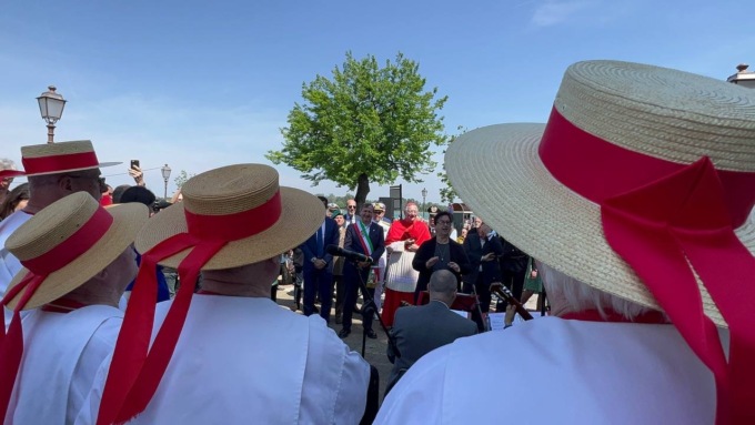 Con l’anello è stata lanciata in acqua una corona d’alloro per tutti i Caduti del mare. Ad accompagnare il rito, l’alzaremi e le note dell’inno di San Marco. Ad assistere alla cerimonia anche il sindaco di Longarone Roberto Padrin, che poco prima, ai Giardini Reali, aveva ricevuto l’anello dogale per il Gemellaggio Adriatico.