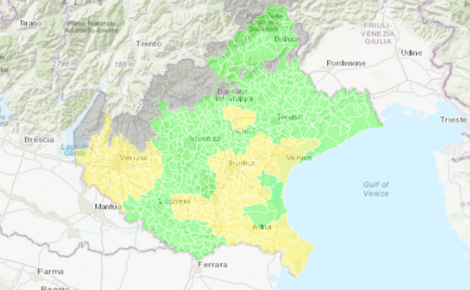 Il bollettino ARPAV è emesso nelle giornate di lunedì, mercoledì e venerdì: qui di seguito il dettaglio della cartina regionale per giovedì 28 novembre 2024.