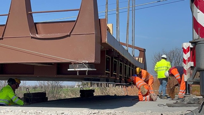 Posa del nuovo ponte sul canale Lugugnana: il video delle delicate operazioni