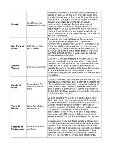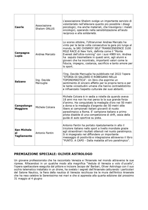 Molti i cittadini del Comune di Venezia che hanno ricevuto l’osella e la pergamena, tra cui spiccano eccellenze dello sport, associazioni legate al volontariato e al sociale e giovani che portano avanti le tradizioni della città. Sono stati inoltre consegnati due premi, ad Oliver Astrologo e ai social creators Niko e Teo, per aver raccontato l’Arsenale e Venezia attraverso una nuova comunicazione digitale.