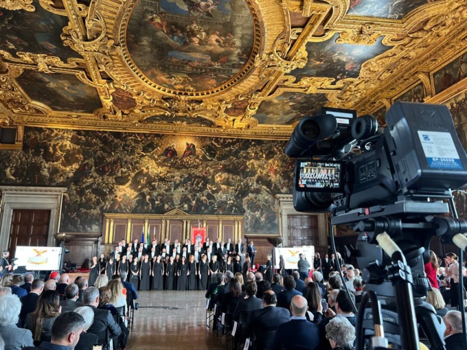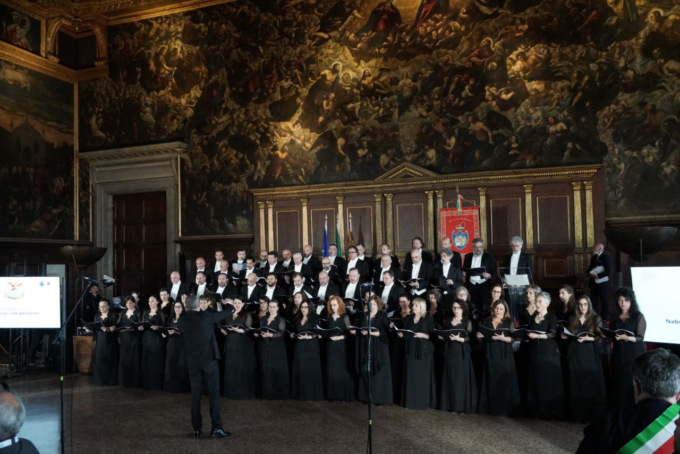 Ad aprire la manifestazione le note del Coro del Teatro La Fenice, diretto dal Maestro Alfonso Caiani, che si è esibito con l’aria “Esultiamo! Letizia ne inondi” tratto dall’Ernani di Giuseppe Verdi.