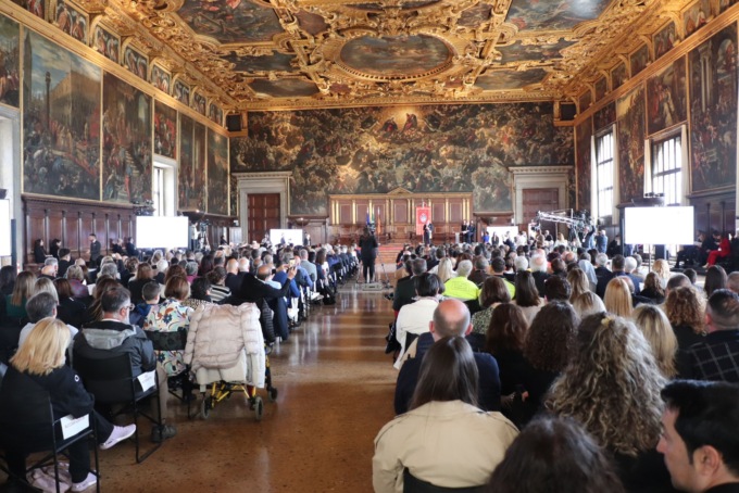 “È un onore vedere che il Premio San Marco è arrivato alla sua quinta edizione ed è ormai entrato di diritto tra gli eventi di quella tradizione veneziana che non solo onora la città, ma anche l’intero territorio metropolitano – ha detto il sindaco della Città di Venezia e della Città metropolitana, Luigi Brugnaro – Ringrazio tutti i sindaci e tutte le persone che sono venute, oggi premiamo le eccellenze perché venga dato l’esempio ai giovani. Spesso ci si ricorda delle cose che non funzionano, e sono sempre tante, ma c’è una realtà viva fatta dalla Città metropolitana, che non finisce qui ma a Padova, Belluno, Rovigo, Treviso e che racconta quello che accade in tutti i nostri 44 Comuni. Tutti insieme ci preoccupiamo di fare bene il nostro dovere e il nostro lavoro e riusciamo così a dare l’esempio di concordia e conciliazione che una giornata così bella richiede. Oggi festeggiamo il 25 aprile, il giorno della Libertà che è stata conquistata contro i regimi totalitari. È successo 78 anni fa e questa democrazia dobbiamo continuare a difenderla non soltanto a parole ma anche con i fatti”.