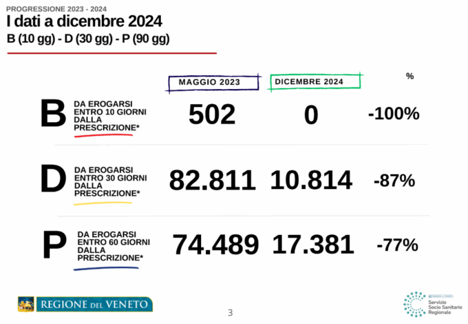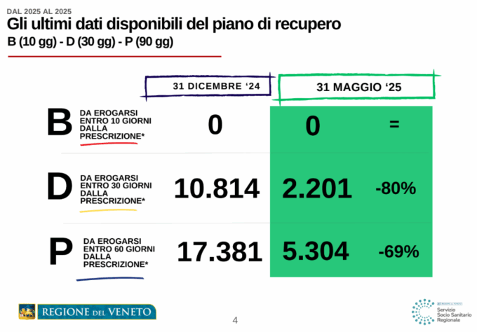 Secondo i dati presentati, le prestazioni con priorità massima, cioè da eseguire entro dieci giorni, sono state completamente smaltite. Anche le attese per le prestazioni da effettuare entro trenta e sessanta giorni hanno subito una contrazione drastica: da oltre ottantamila a poche migliaia nel primo caso, e da quasi settantacinquemila a poco più di cinquemila nel secondo.