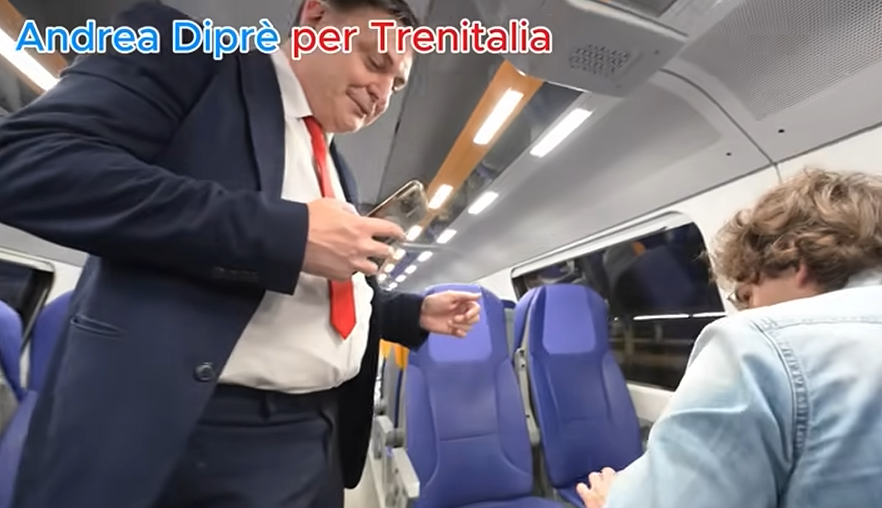 Giacca scura, camicia bianca e cravatta rossa. Con addosso il suo solito completo elegante, Andra Diprè (in copertina), ex avvocato trentino e oggi noto e controverso personaggio dei social, si è finto capotreno di Trenitalia e, a bordo del convoglio regionale Venezia-Portogruaro-Caorle, ha controllato i biglietti dei passeggeri per poi deriderli in un video pubblicato su YouTube.