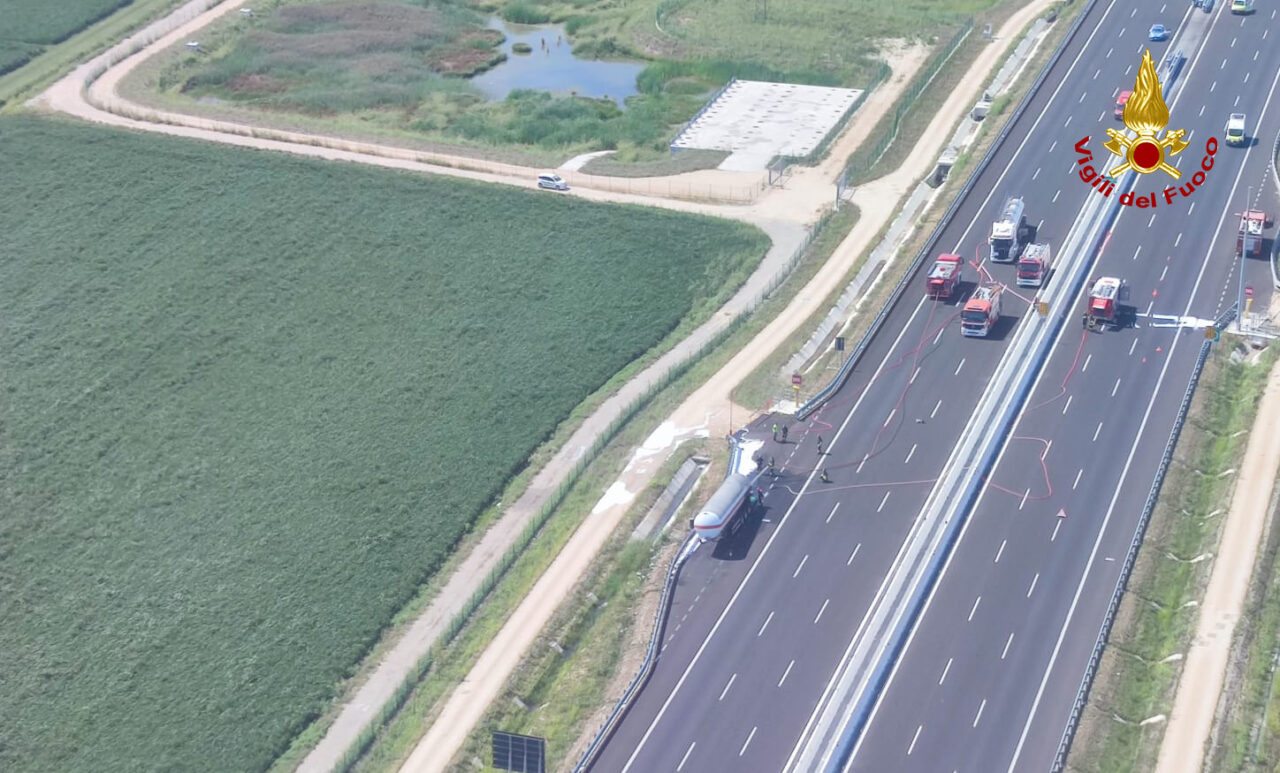 Autostrada chiusa in entrambi i sensi di marcia. I pompieri arrivati sul posto, con molta difficoltà per il traffico congestionato, da Latisana, Portogruaro, San Donà, Udine, Pordenone, Mestre con 3 autopompe, 5 autobotti, il carro NBCR (Nucleare Biologico, Chimico, radiologico) e 25 operatori, sono riusciti a spegnere l’incendio, che aveva coinvolto il gruppo valvolare riuscendo a intercettare la perdita.