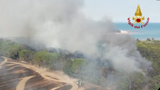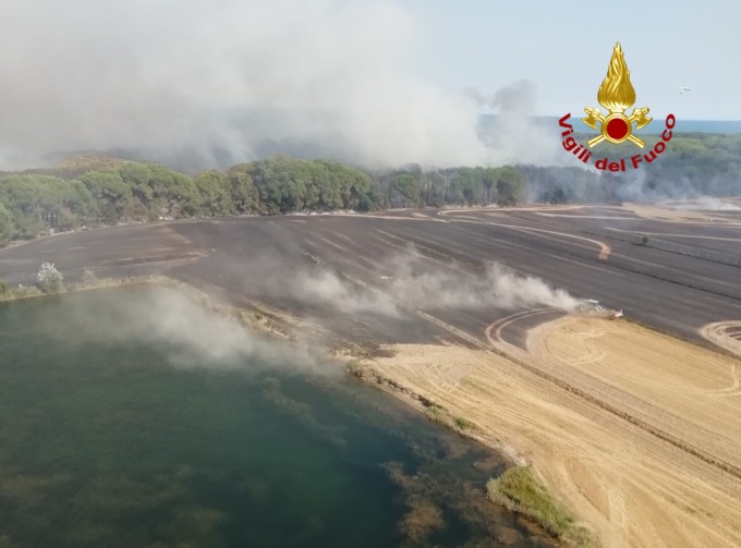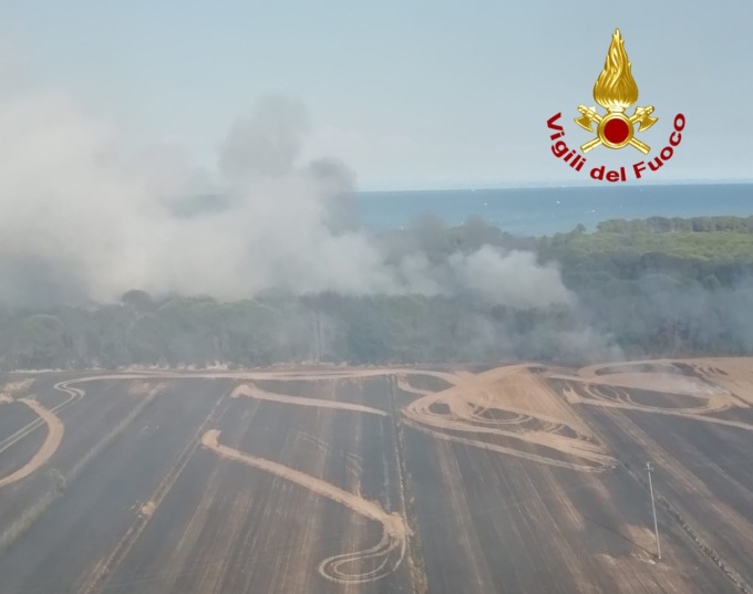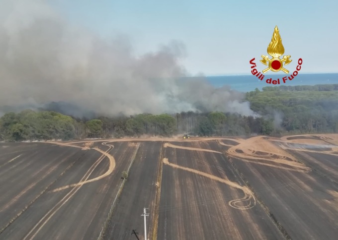 Dalle 14:45, i vigili del fuoco stanno operando per incendio di un campo di mais a San Michele al Tagliamento nei pressi della pineta di Bibione.
