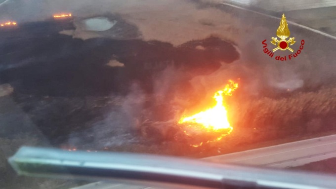 I vigili del fuoco hanno operato in località Isola Verde di Chioggia tra l’argine sinistro del Brenta e il lido Smeraldo per un esteso incendio sterpaglia