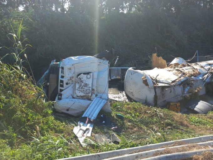 L’autocisterna carica di melassa di barbabietola si ribalta in strada: il conducente rimane incastrato tra le lamiere