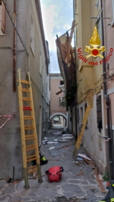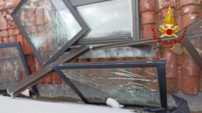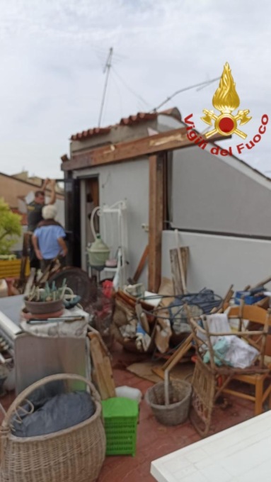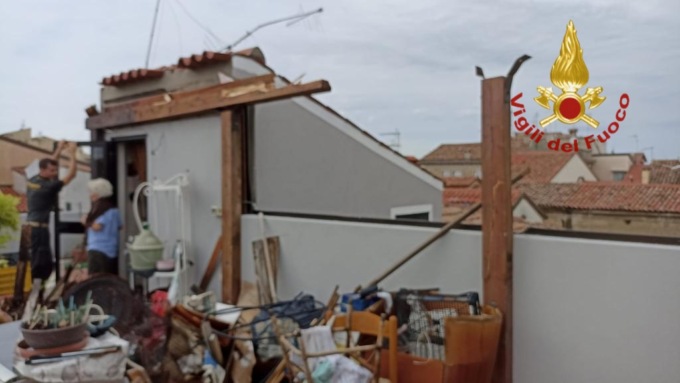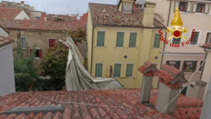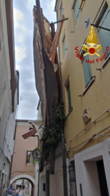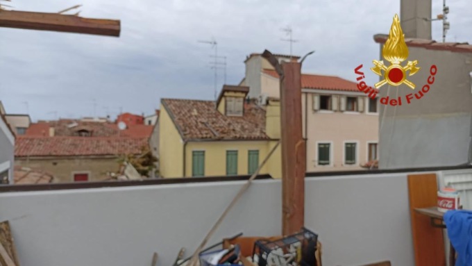 Il maltempo ha colpito soprattutto Chioggia, i pompieri sono intervenuti a Calle Gabardi per lo sradicamento della veranda dovuto al forte vento.