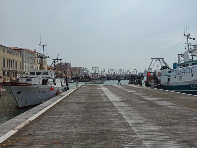 Sono quasi 60 i pescherecci che hanno raggiunto il canale della Giudecca per protestare contro il caro gasolio
