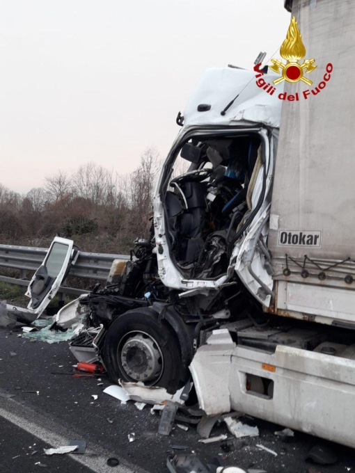 L’impatto è stato violentissimo: il mezzo pesante si è ridotto un cumulo di lamiere e il conducente è rimasto incastrato. Per liberarlo è stato necessario l’intervento dei Vigili del fuoco.