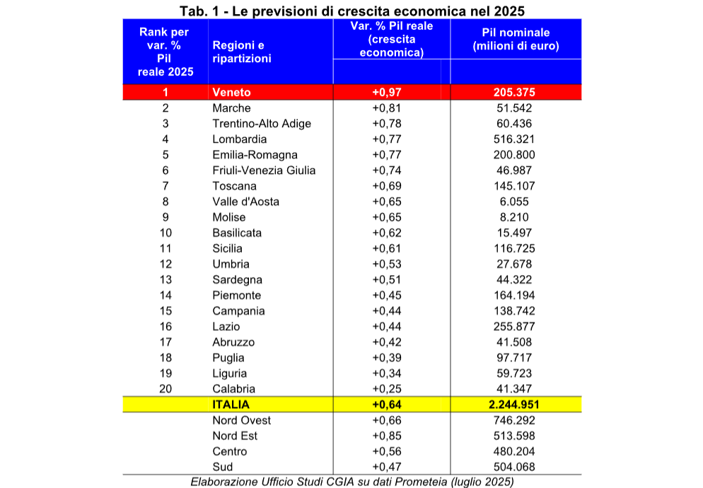 In valore assoluto, infatti, il Pil nominale è destinato a superare i 205 miliardi di euro. Dietro al Veneto, stanno le Marche con un aumento dello 0,81% e il Trentino Alto Adige con lo 0,78%.