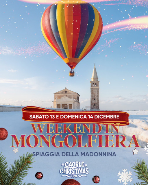 Dopo il successo dell’esordio, cresce l’attenzione per il Weekend in Mongolfiera, in programma sabato 13 e domenica 14 dicembre sulla spiaggia della Madonnina, dalle 14:30 alle 18:00. Una mongolfiera ancorata permetterà ai visitatori di sollevarsi in quota per ammirare Caorle dall’alto, tra mare, campanile cilindrico e mercatini illuminati, regalando un’esperienza spettacolare adatta anche ai più piccoli.