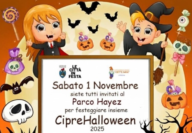 Sabato 1 novembre al Parco Hayez si festeggia con CipreHalloween, la manifestazione dell’Associazione I Sette Nani dedicata ai bambini.