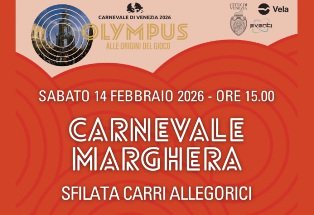Sabato 14 febbraio appuntamento con il Carnevale di Marghera. L’evento, organizzato da C2020 ed Eventi 2000 e inserito nel programma del Carnevale di Venezia 2026, è in programma alle ore 15 e prevede una sfilata di carri allegorici che comincerà da piazzale Gar e, dopo il passaggio in via Avesani, piazzale Concordia, piazza Mercato, via Rizzardi, piazzale Giovanacci e via Toffoli, si concluderà in via Crosarol.