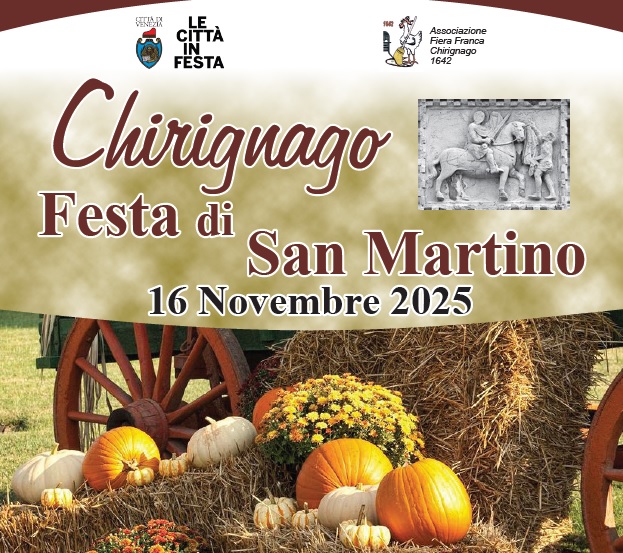 Domenica 16 novembre 2025, piazza San Giorgio ospita la Festa di San Martino di Chirignago, organizzata dall’Associazione Fiera Franca Chirignago 1642. La manifestazione, in programma per l’intera giornata, propone bancarelle espositive con oggetti d’epoca, degustazioni tradizionali come la castagnata accompagnata da vin brulè e momenti di svago per i più piccoli, che potranno fare un giro in carrozza a cavalli dalle 10.30 alle 12 e dalle 14.30 alle 16.30. Un appuntamento che unisce tradizione, convivialità e vita di comunità nel cuore di Chirignago.
