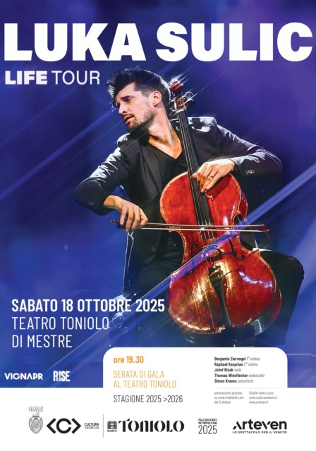 Il Teatro Toniolo inaugura la Stagione 2025–26 del Settore Cultura del Comune di Venezia con una Serata di Gala che vedrà protagonista il celebre violoncellista Luka Šulić, in concerto con il suo ultimo lavoro da solista.