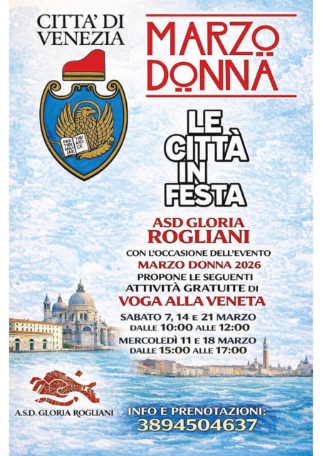 Si svolge dal 7 al 21 marzo 2026 l’iniziativa “Donne e tradizioni veneziane”, un ciclo di appuntamenti dedicati alla voga alla veneta e alla scoperta della cultura lagunare.