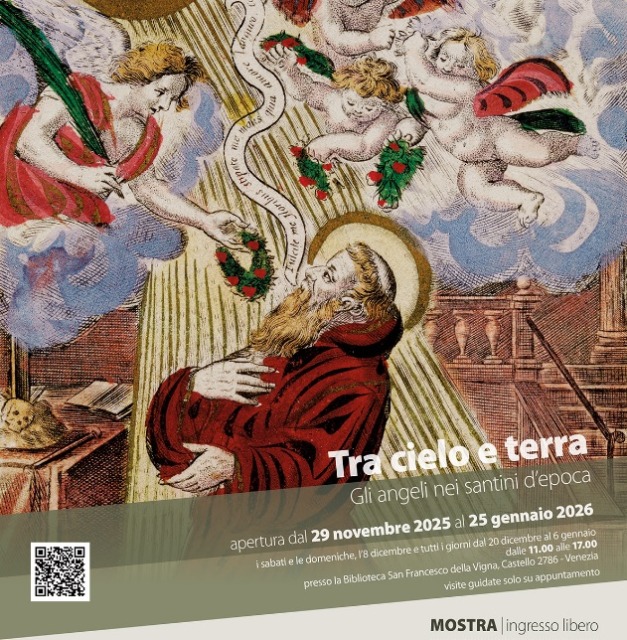 Dal 29 novembre al 25 gennaio nella Biblioteca San Francesco della Vigna si potrà visitare la mostra “Tra cielo e terra”, dedicata alla rappresentazione degli angeli nei santini d’epoca. Durante il periodo indicato l’esposizione, che rientra nel palinsesto de “Le Città in Festa”, sarà aperta i sabati, le domeniche, l’8 dicembre e in tutti i giorni dal 20 dicembre al 6 gennaio, sempre dalle 11 alle 17. L’ingresso è gratuito.