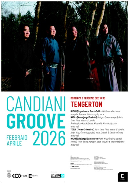 Il primo appuntamento ad aprire il programma è domenica 8 febbraio 2026 alle 18.30 con Tengerton, gruppo di musica popolare e contemporanea mongola, composto da un quartetto di Morin Khuur (il violino a cavallo), lo strumento ad arco più emblematico della tradizione musicale della Mongolia.