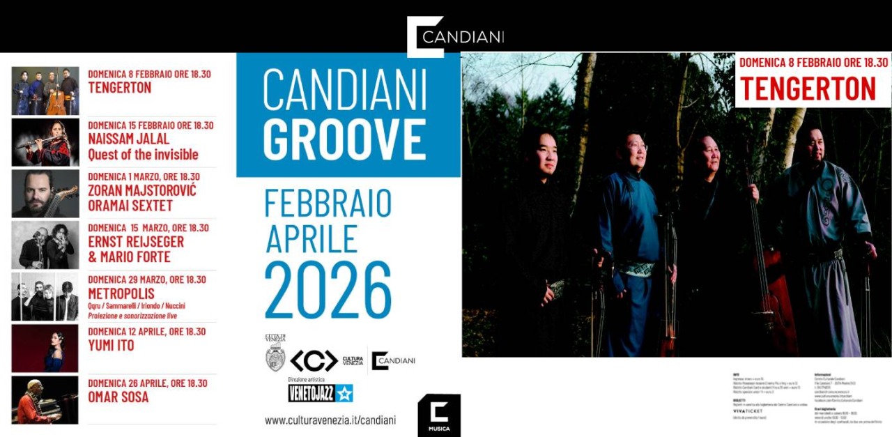 Candiani Groove, la rassegna di musica internazionale proposta al Centro Candiani dal Settore Cultura del Comune di Venezia con la direzione artistica di Veneto Jazz, torna nel 2026 con un nuovo cartellone di concerti primaverili da febbraio ad aprile.