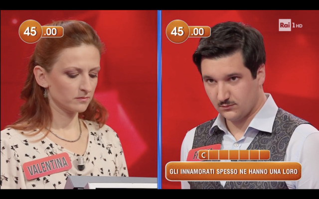 L’inizio della partita del concorrente veneziano non è stato dei migliori, anche se si poteva vedere che era carico. Infatti, è stato il secondo concorrente a illuminarsi di rosso, dovendo così affrontare la prima sfida della puntata. Ma prima di cominciare, il conduttore gli ha chiesto se fosse pronto e come se la cavava da casa, a cui lui ha risposto sorridendo: