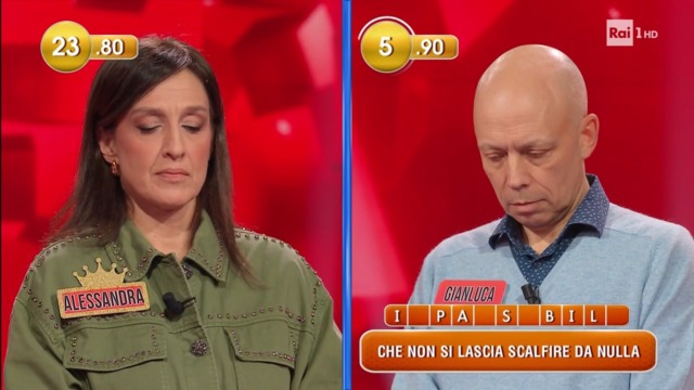 Dopo un inizio scattante, è rimasto fregato da “una tutina per neonato” la cui risposta era “pagliaccetto“. In particolare, questa domanda gli ha fatto perdere diversi secondi, che poi gli sono costati l’eliminazione. Di fatto, solo dopo due domande, è rimasto bloccato nuovamente.